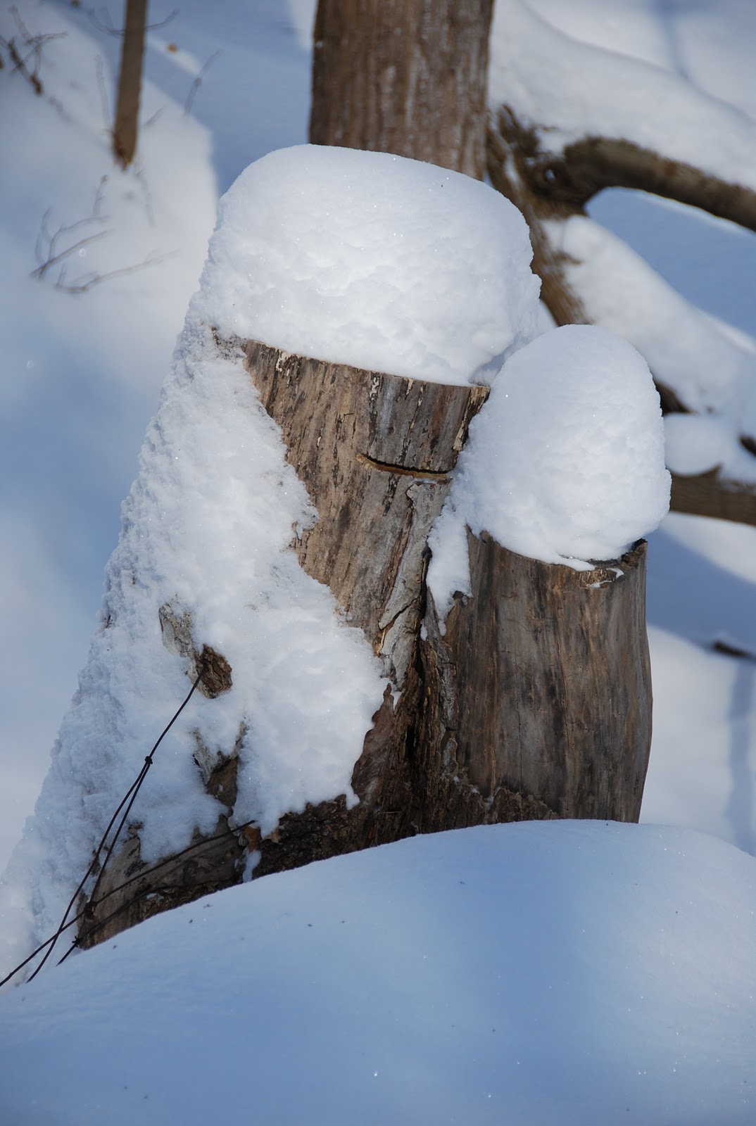 | The bunny trail on this log is the only mar in the perfect snow. |